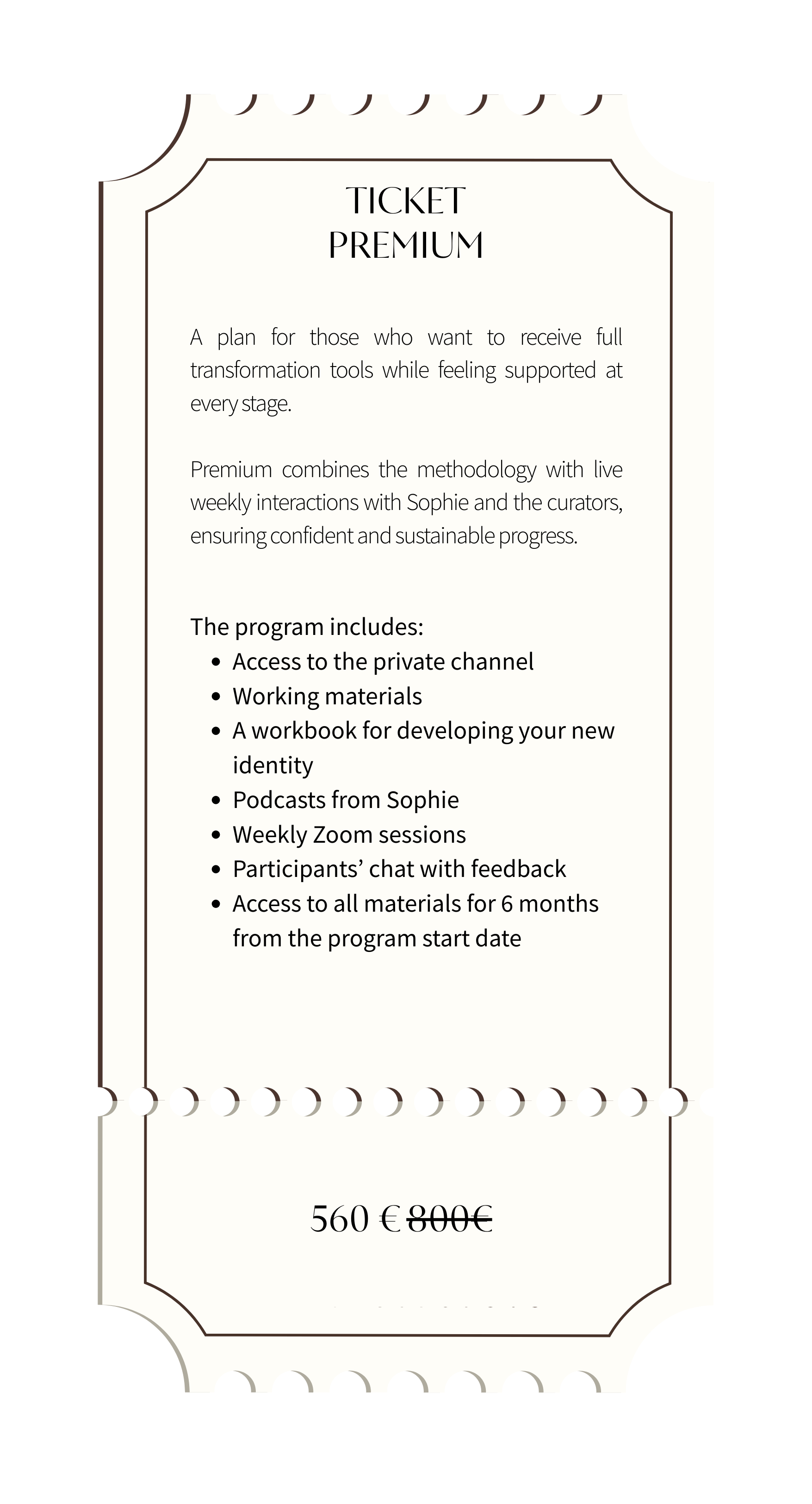 Each chapter comes with a workbook, checklists, a shared participants’ chat, and feedback from Sophie. You will receive a self-management guide built on love and honesty.